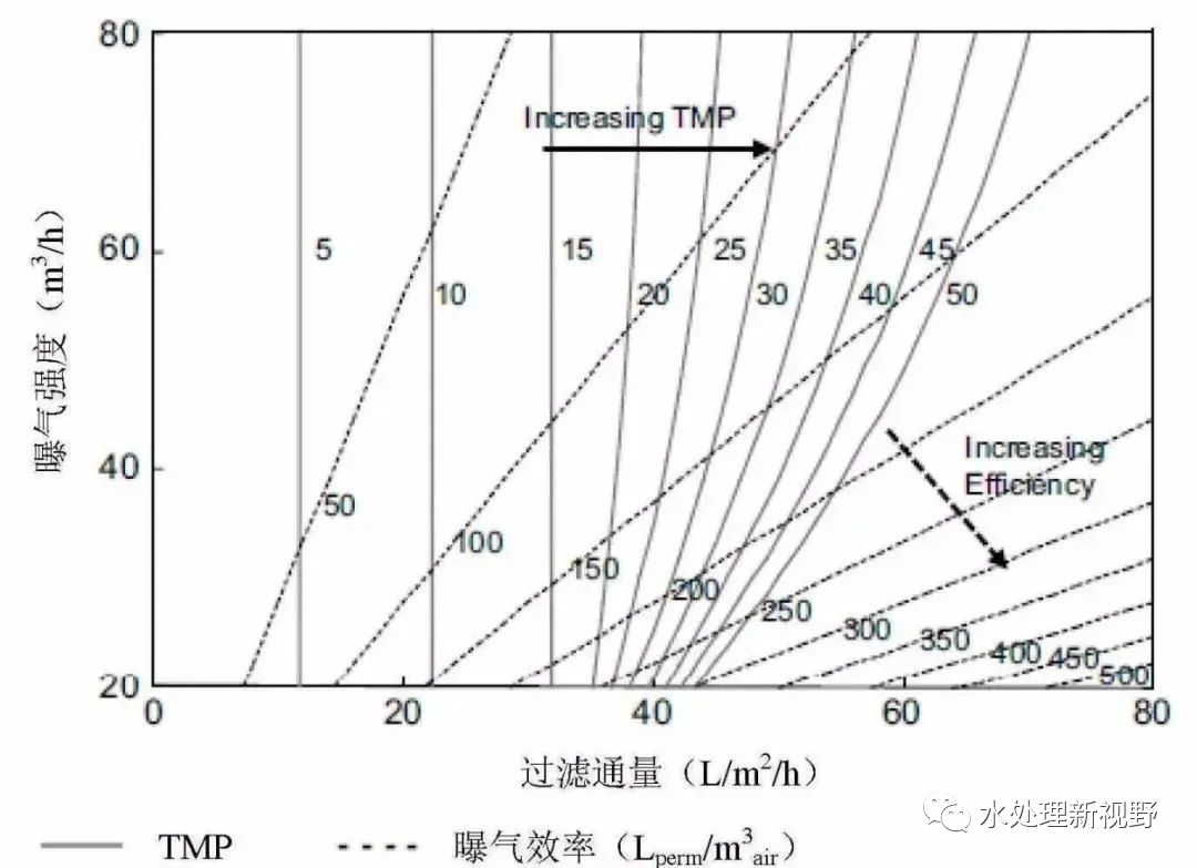 跨膜壓差,曝氣強(qiáng)度以及通量關(guān)系圖