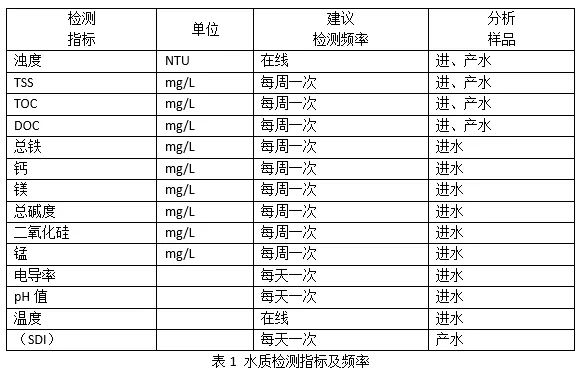 4.1.1 至少每周監(jiān)測并記錄超濾預(yù)處理的進(jìn)出水COD、濁度以及鐵/錳金屬等;