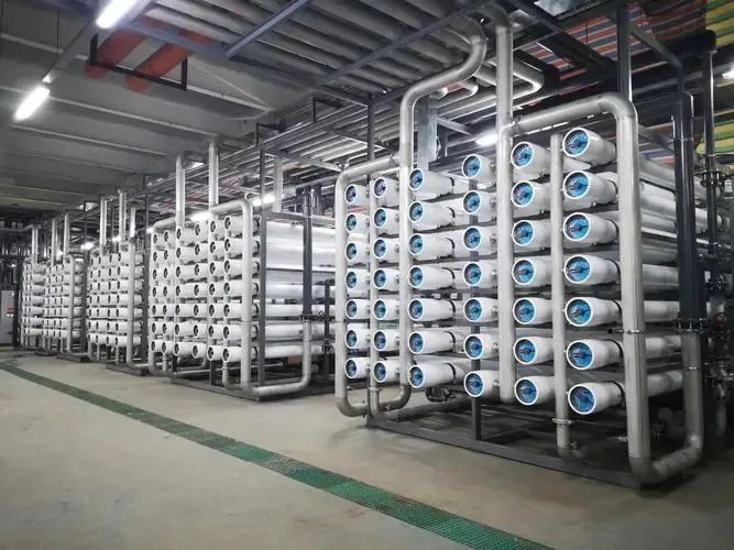 通常的預(yù)處理系統(tǒng)組成如下,粗濾(~80微米)以除去大顆粒,加入次氯酸鈉等氧化劑,然后經(jīng)多介質(zhì)過濾器或澄清池進(jìn)行精密過濾,再加入亞硫酸氫鈉還原余氯等氧化劑,最后在高壓泵入口之前安裝保安濾器。